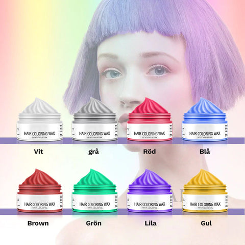 Vill du ha djärv hårfärg utan engagemang och skador av permanent hårfärgning? Vårt tillfälliga hårfärgsvax ger en iögonfallande färg och tvättas enkelt av med en enda dusch! Välj mellan 10 färger!