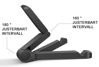 Perfekt för skrivbord eller bord för att titta på filmer, läsa etc. synkronisera laddning av din enhet. Det mycket justerbara stativet ger optimal synvinkel och positionering. Den fälls upp till en helt platt form, lätt att bära i en ficka, väska eller när du är på språng.
